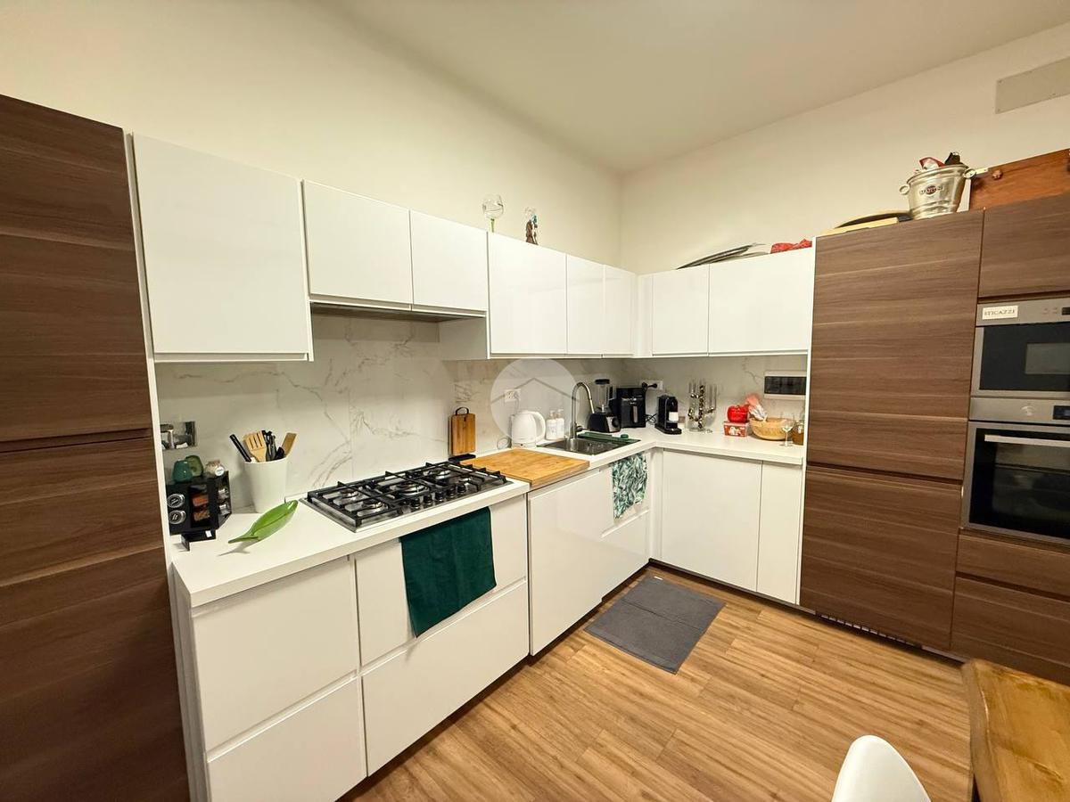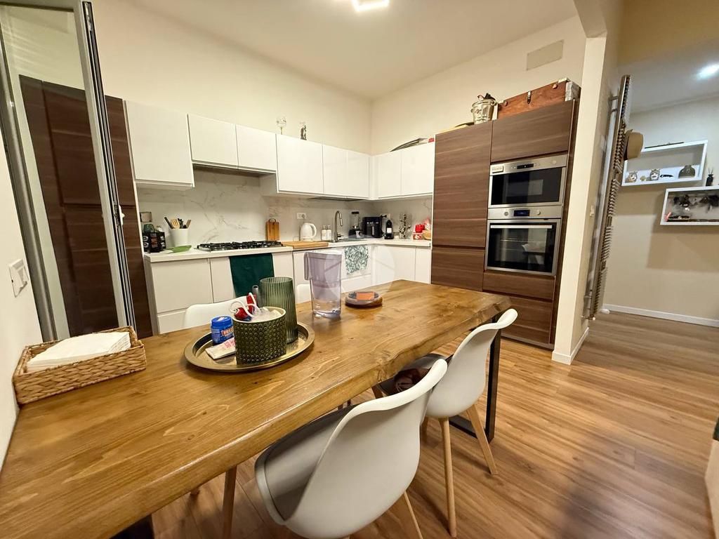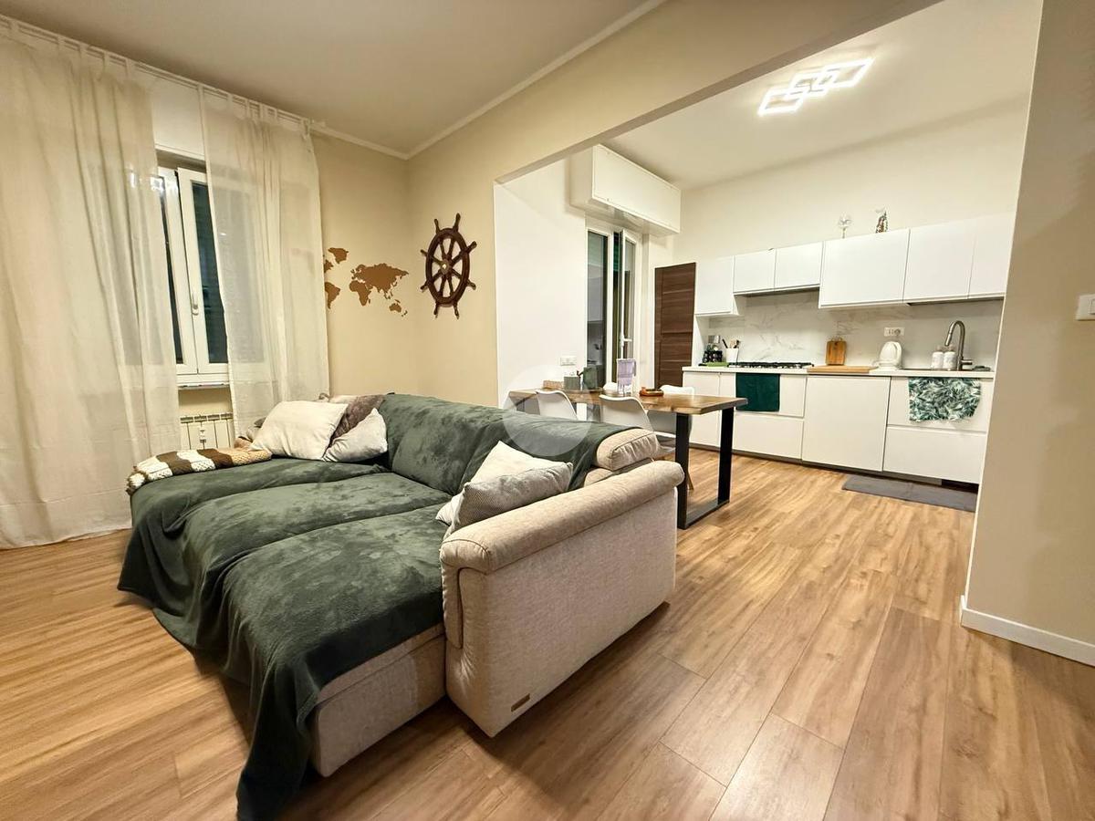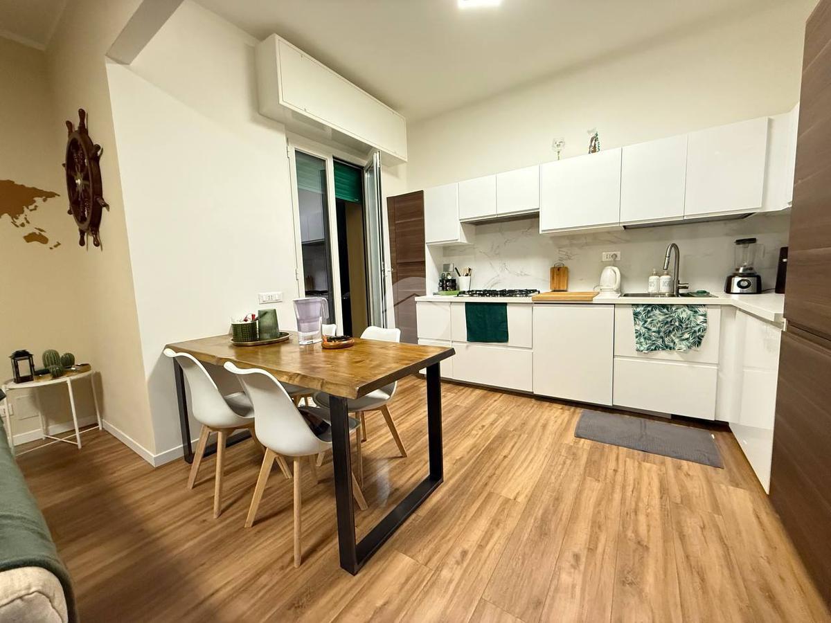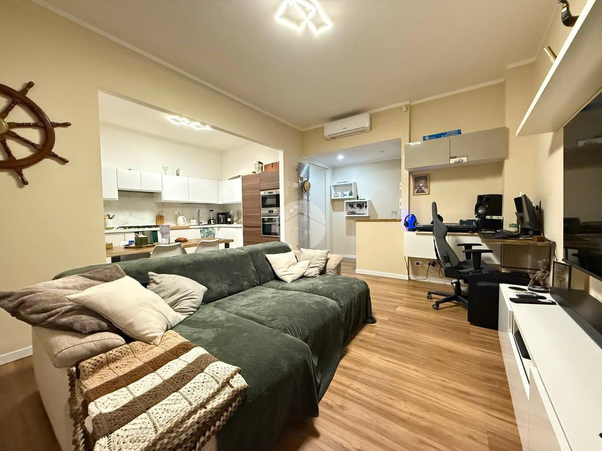 L'appartamento frutto di una recentissima e totale ristrutturazione risulta ottimamente diviso tra zona giorno e notte, ed è così composto: ingresso con porta blindata direttamente in zona giorno composta da cucina e living, da cui si ha accesso all'ampio giardino di 80 mq.