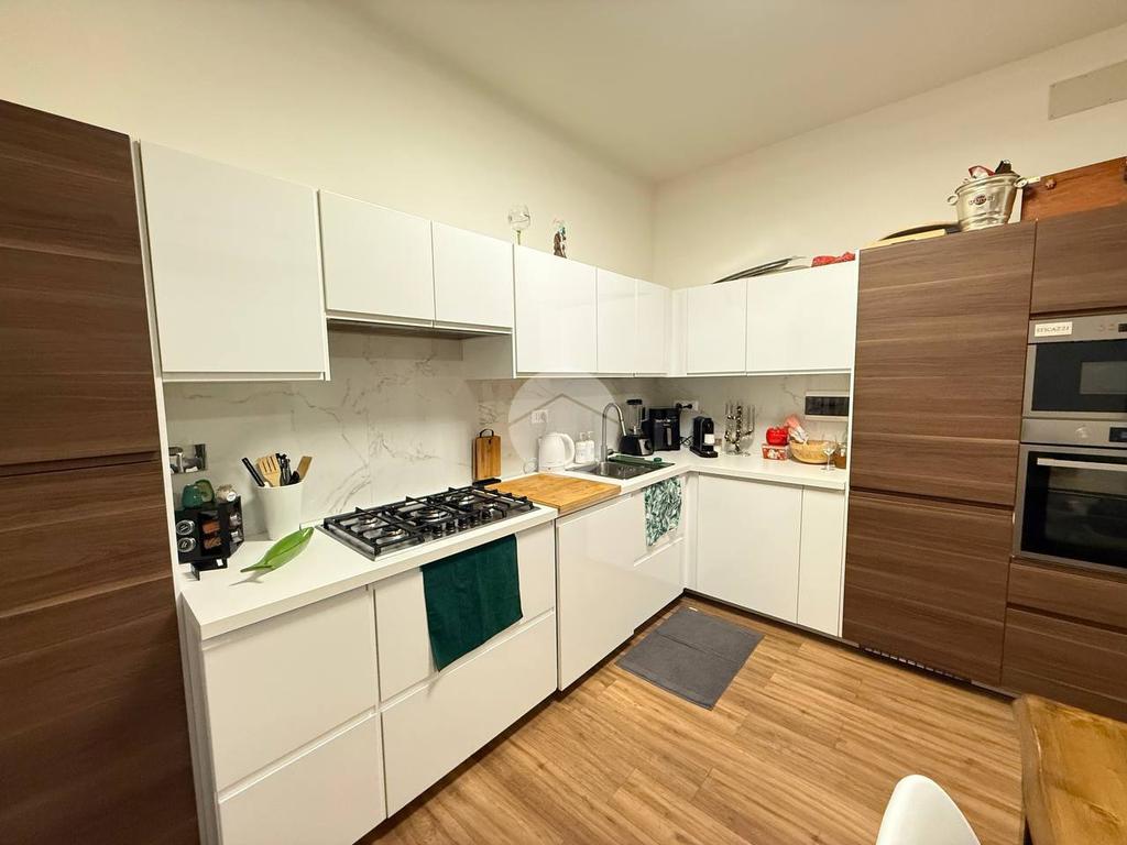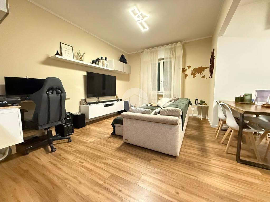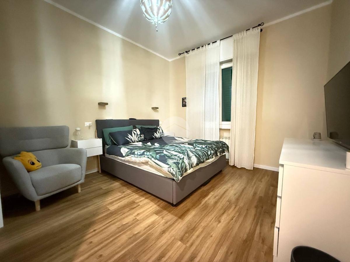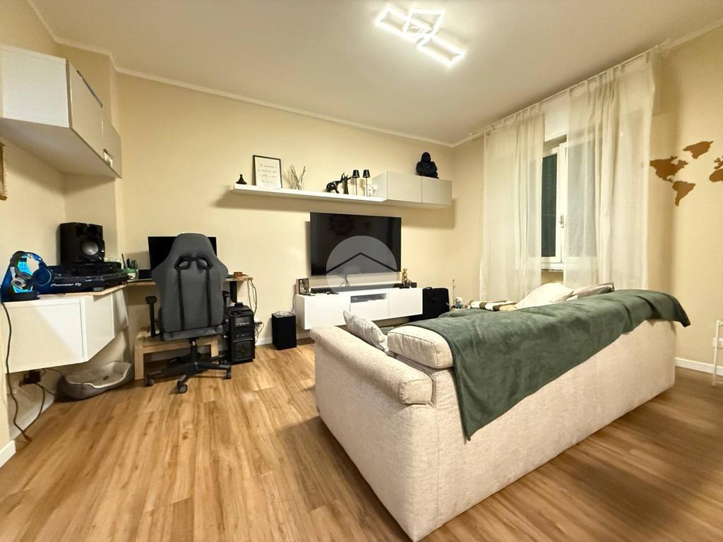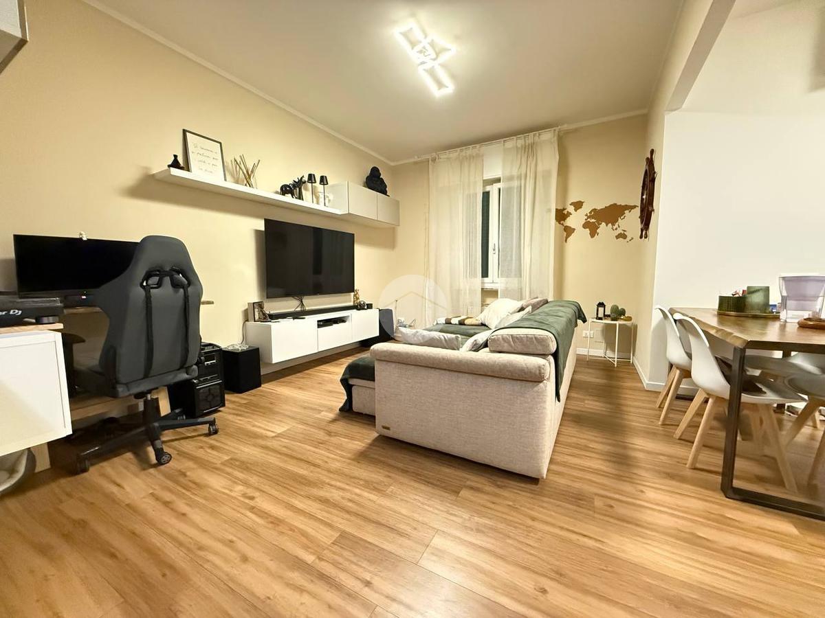 L'appartamento frutto di una recentissima e totale ristrutturazione risulta ottimamente diviso tra zona giorno e notte, ed è così composto: ingresso con porta blindata direttamente in zona giorno composta da cucina e living, da cui si ha accesso all'ampio giardino di 80 mq.