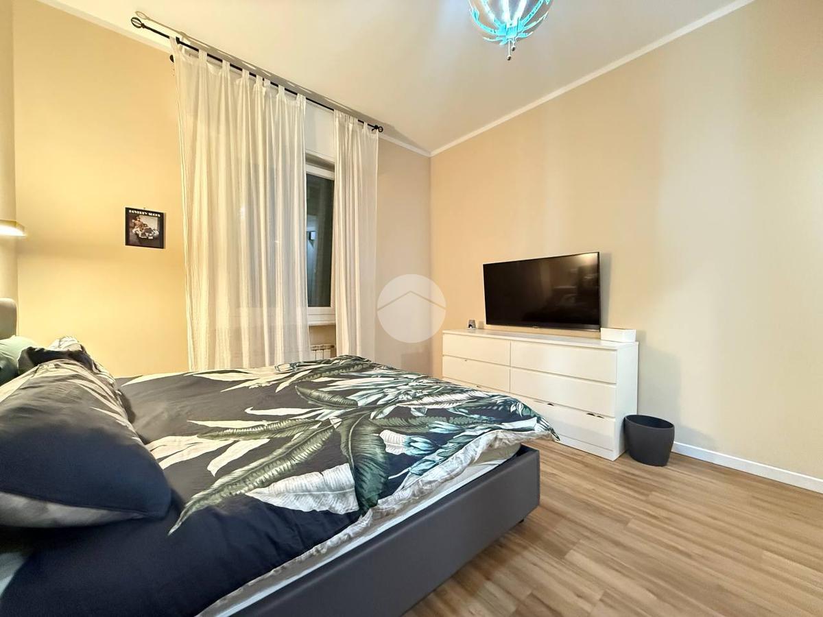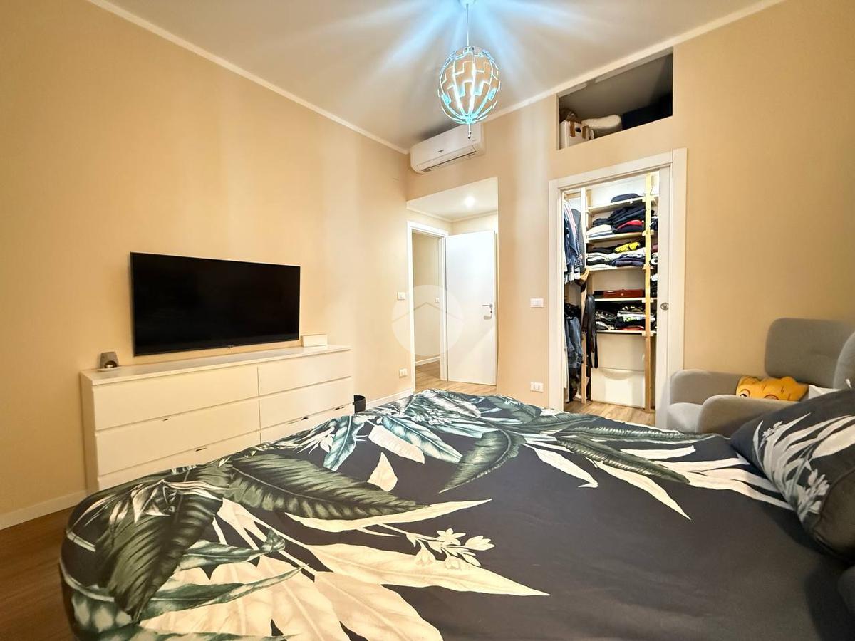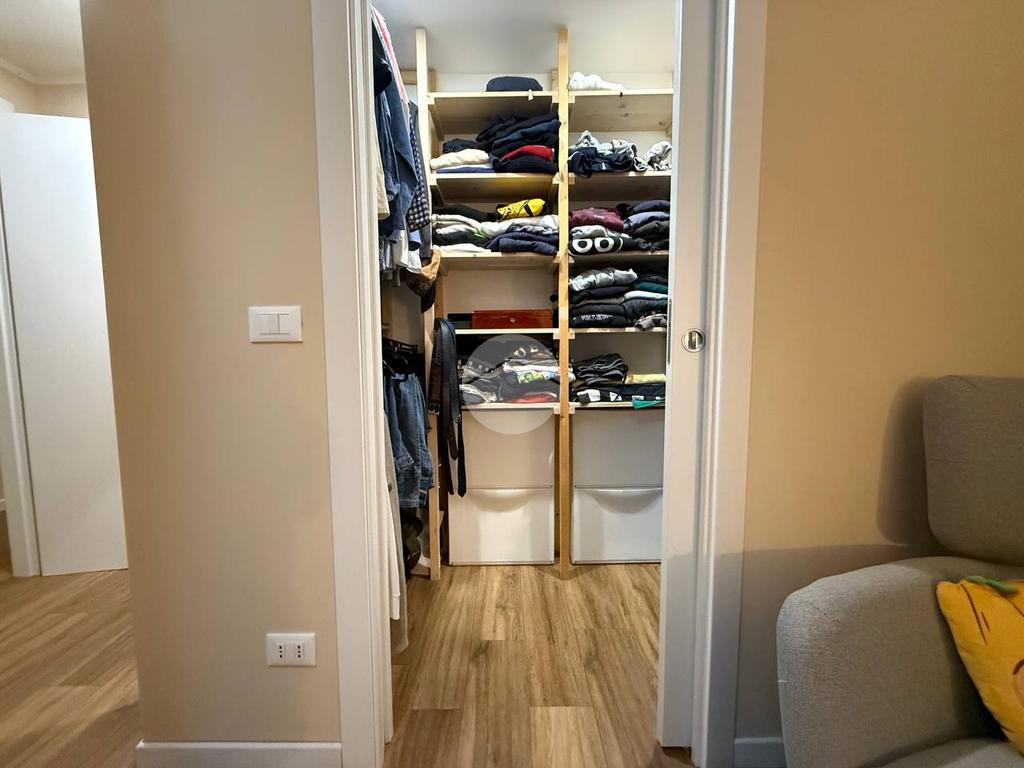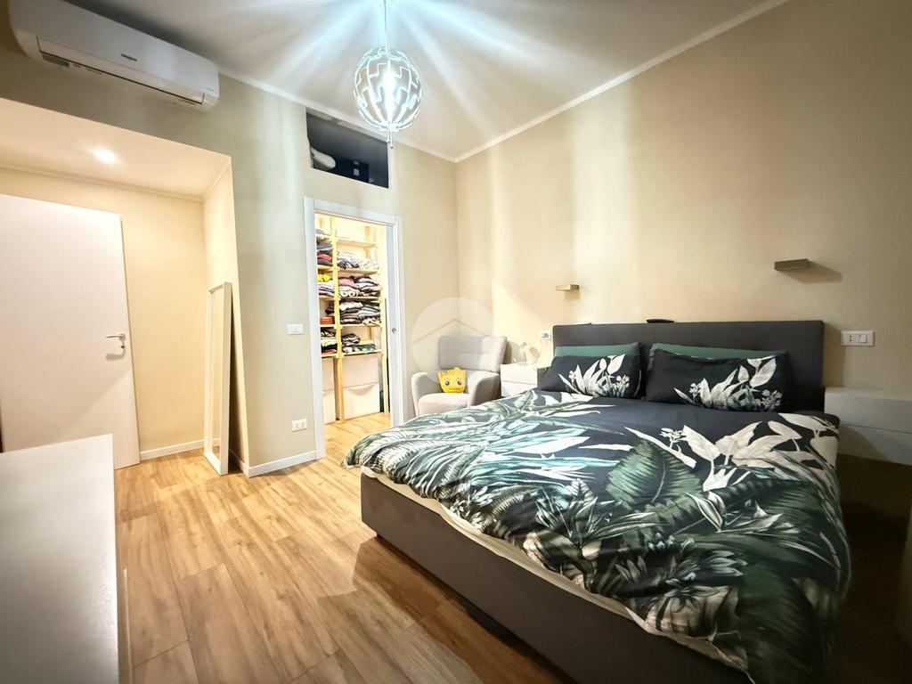 La zona notte comprende l'ampia camera matrimoniale dotata di cabina armadi al suo interno, ed un bagno con box doccia finestrato.